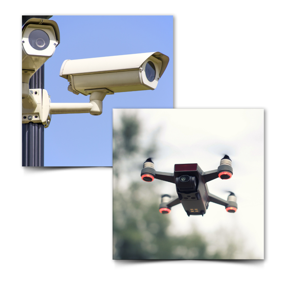 Drones + CCTV milkar har angle se security dete hain — bina blind spots ke.