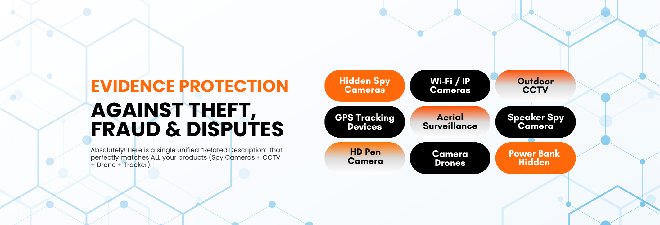 Advanced Hidden Cameras + WiFi CCTV + Tracking Devices — perfect for home, shop, office & outdoor protection. HD video, night vision, motion alerts & secret recording ensure complete security without blind spots.